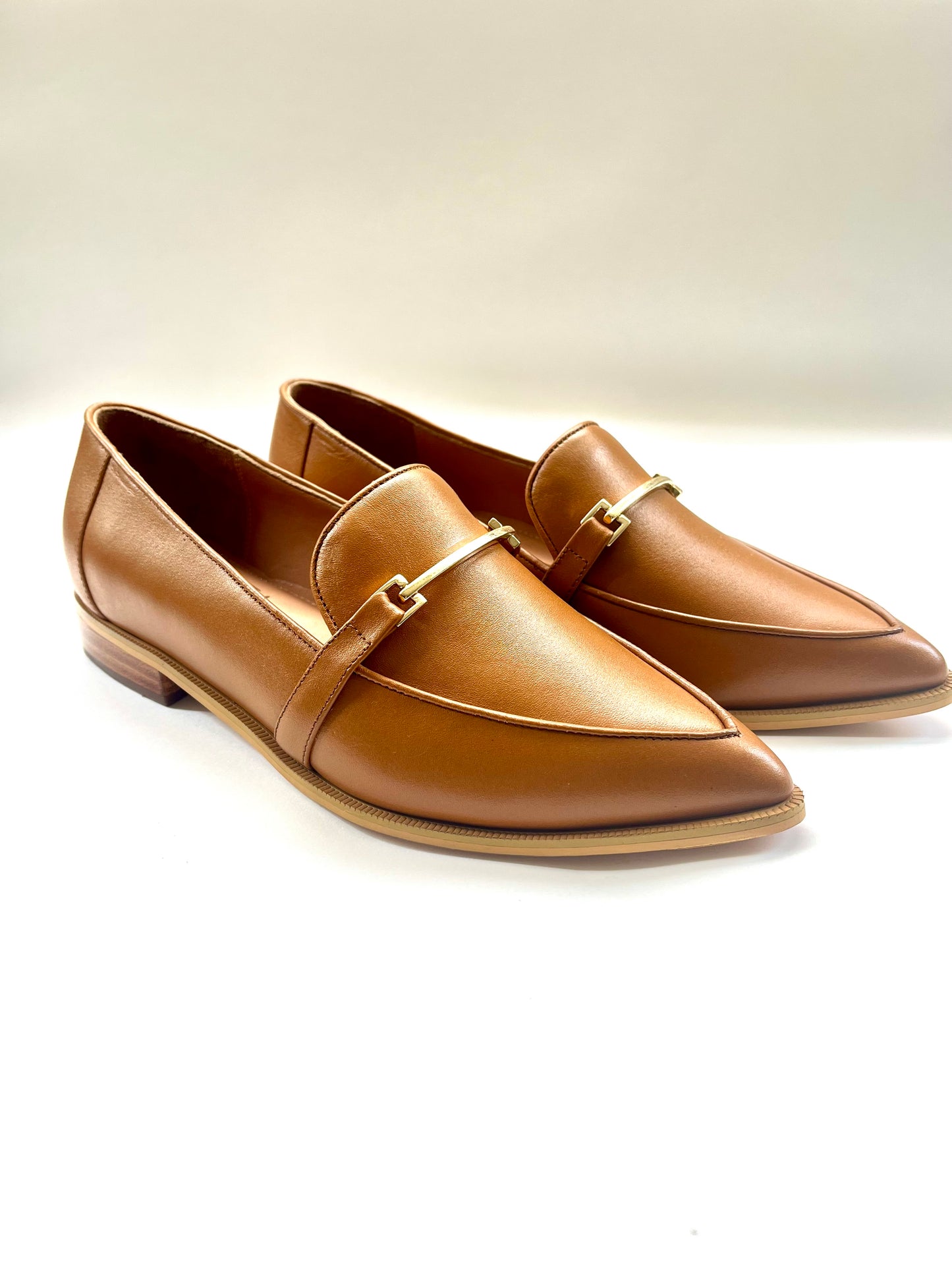 Mocasine en cuero liso con linda aplicación en Niquel. Taco de 1.5 cm
